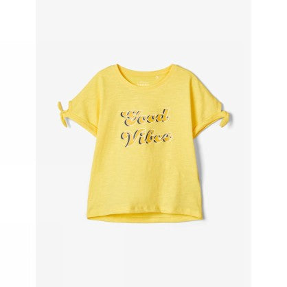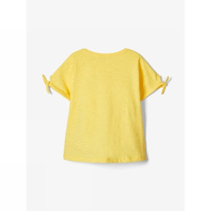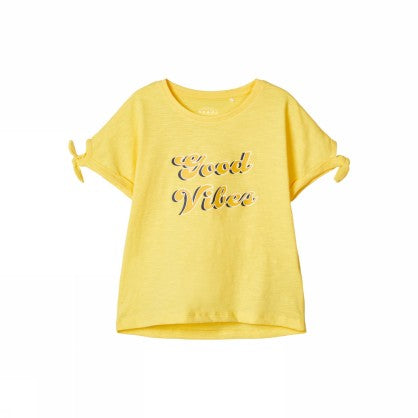 T-shirt in cotone traspirante. Maniche corte con dettaglio nodo. Stampa grafica sul petto. Vestibilità regolare. Scollo rotondo. Il cotone biologico viene coltivato senza l'uso di pesticidi pericolosi o fertilizzanti sintetici, creando condizioni migliori